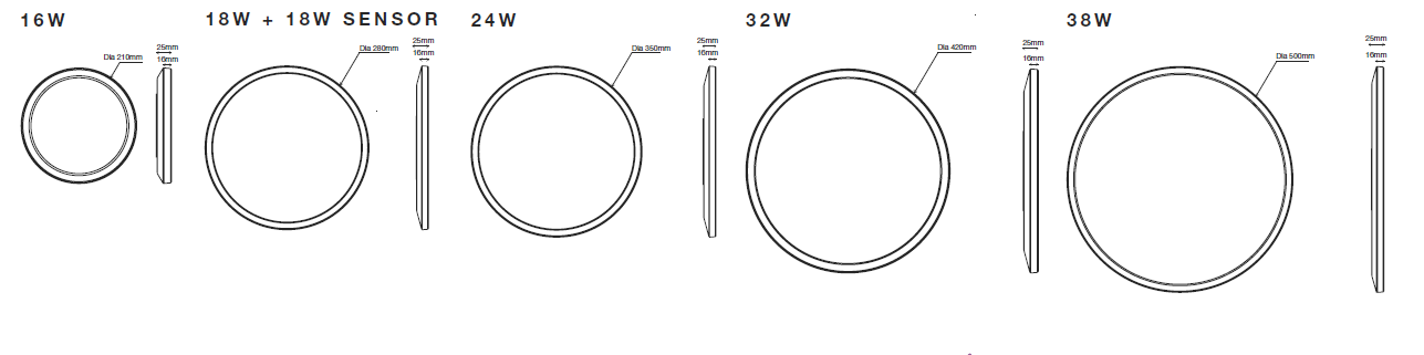 16W | 18W | 18W Sensor | 24W | 32W | 38W